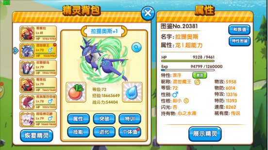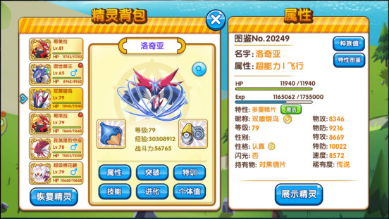 这个是我的平衡洛奇亚(紫色)平衡的倒是什么不减,但是也什么都不加.......确实让人有些头痛,现在我带的是空爆+急冻光线+大地之力+睡觉(多重鳞片),现在我这个配招还是可以的,打打超梦x、裂空、古拉顿都是可以的然后大地之力联攻班吉拉或者补刀班吉拉都是不错的。洛奇亚是个万金油宠物真的不错。其实以后我可以用洛奇亚针对海皇牙,学习引水、带歇息、学10万或者打雷+空气爆炸也是不错的。至于顺风我现阶段还没想好,等最后再决定给谁吧。