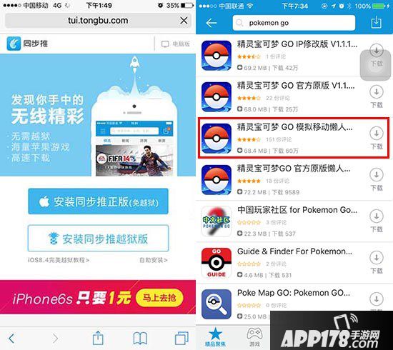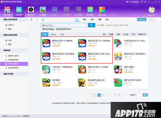 2、电脑用户,安装同步助手,然后进入应用游戏--苹果正版商店,搜索精灵宝可梦go下载。