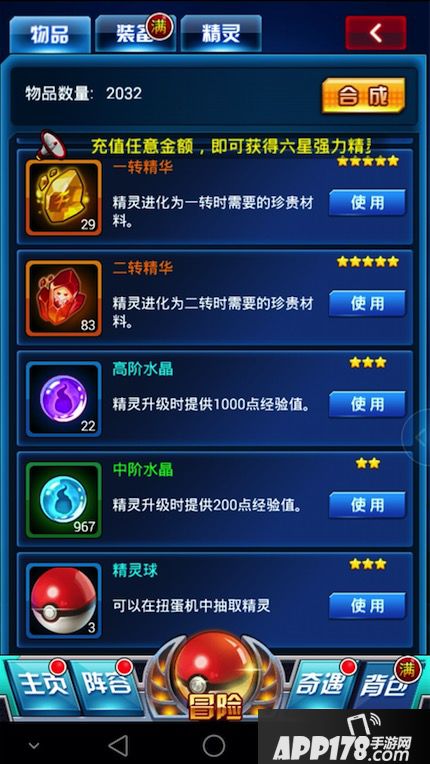 在具备5个水晶后,即可升级精灵。属性大幅度提升哦。