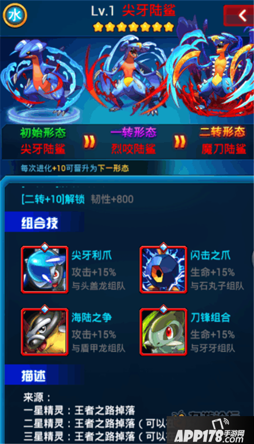 2、暴力流:(1)尖牙陆鲨,由基拉,盾甲龙,牙牙,头盖龙,石丸子。为什么称这一队唯暴力流,因为他点亮了除牙牙以外的所有攻击缘分。尖牙陆鲨满缘分,由基拉两个攻击,除牙牙外其余3只精灵均为两攻击一生命,牙牙为单攻击双血。这里为了节约字幅,不再过多分析,直接上结论