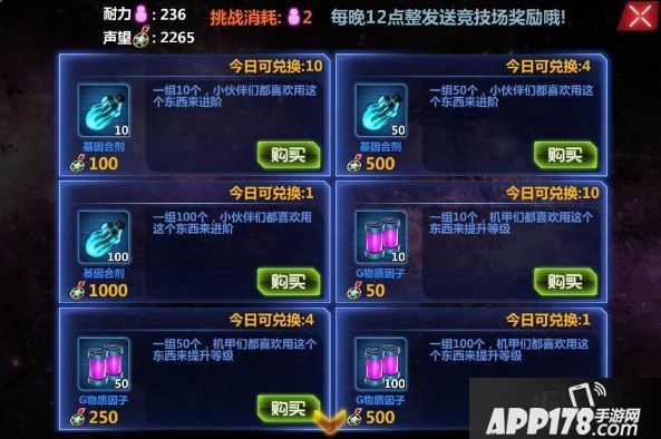 在这里可以获得大量威望、星钻和银河币。玩家可以看到自己的排名,每天晚上24点会根据竞技场排名进行奖励结算,发放奖励。 排名越高每天能获得的银河币,声望与星钻也会越多。CT联赛获得的威望可以在商店中购买各种强力的机师与道具!