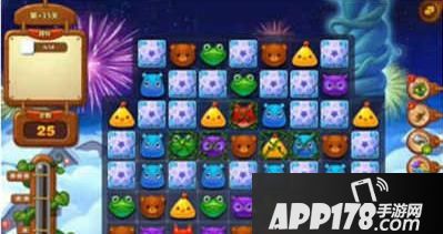 上图即是隐藏第15关,冰块上还有雪花,想要在25步内全部清除并不容易。薄暮的建议是可以先清除下方没有冰块的小动物,尽量先形成特效。如果有魔力鸟的话,可以和各种其他特效组合。不要浪费步数去消除蔓藤,冰块和特效才是重点,尤其是竖线的魔力鸟,更是重中之重。