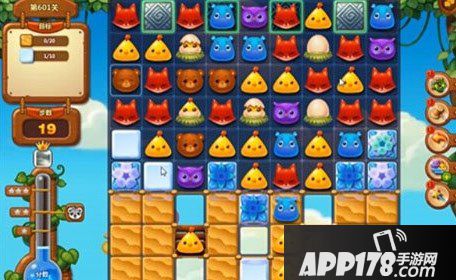 在雪块消除之后,栏杆的下方有传送门,传送门可以让上层的动物下落。但是受限制与木栏杆,动物都是无法交换的。所以我们还是需要多多的孵化小鸡来消除流沙。还可以制作特效来进行消除。