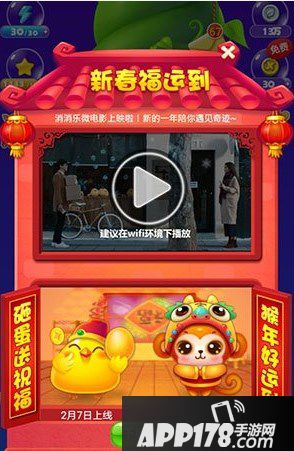 开心消消乐如何观看新春版微电影。新春版本中,不仅仅增加了许多有趣的玩法,还有微电影的出现。在界面的右上角会看到一个电影的标志,点击查看之后,我们就可以看到微电影了。每一个爱情都不可被错过,不知道看到电影的玩家会不会陷入到深深的回忆呢。