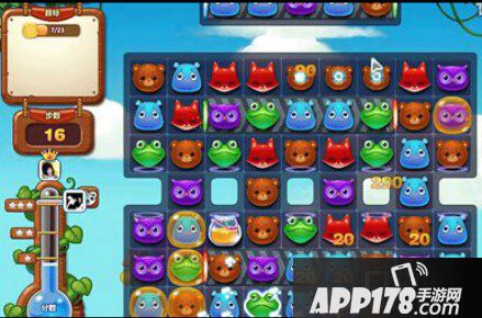 本关就是在28步之内打碎蜂蜜罐获得21个蜂蜜。说来简单做起来可不简单。想要在这么短的步数内完成任务只能依靠道具和特效才行。