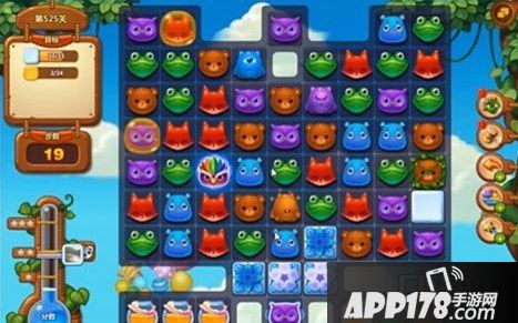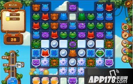 开心消消乐525关收集蜂蜜过关图文讲解。在525关的时候主要的过关要求是收集指定数量的蜂蜜,还需要消除雪块等不同的障碍,但是想要收集蜂蜜,就需要打破蜜罐。蜜罐需要消除周边的动物才可以打破,消除3次之后,就会有蜂蜜飞出来。