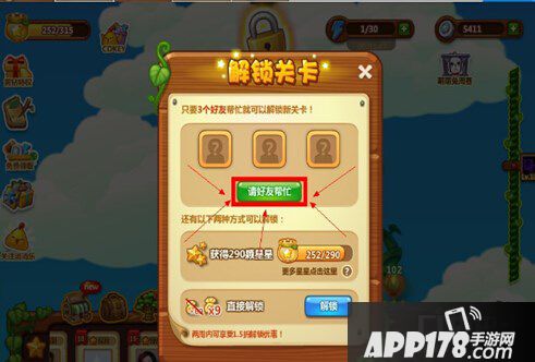 在开心消消乐中我们有时候需要三个好友帮助才能解锁新的关卡。