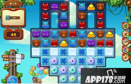 开心消消乐隐藏关卡5是一个有难度的关卡,上方因为只有四条通路,所以掉下来的小动物位置会不断变化。