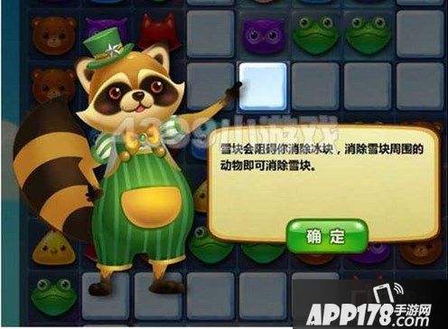 开心消消乐【特殊关卡 - 消除冰块】消除冰块周围的小动物,就能融化结霜的雪块和冰块!有时候需要多次消除,才能完全融化!