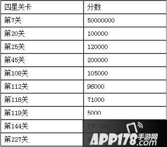 四星关卡不多,都是隐藏关,难度摆在那里,只有10关,分别是第7关、第20关、第25关、第45关、第108关、第112关、第118关、第119关、第144关、第227关。