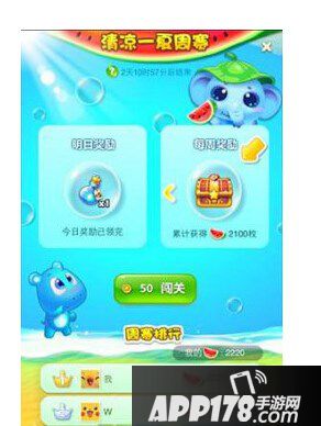 如果我们可以通过分享得到额外的次数的话,就可以有21次的挑战机会,但是最后关卡宝箱要求2100个西瓜宝石,相当于每个关卡平均最少收集100个。有的关卡是比较的难度,收集100个也是很有难度的。所以最后的宝箱开启是需要技巧与运气次数的。