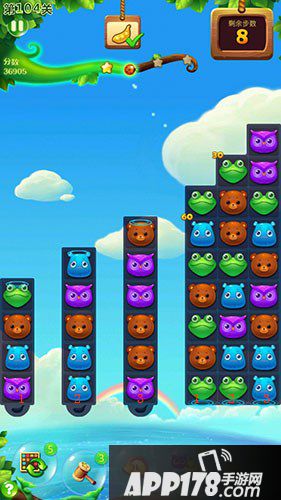 我们还需要使用右边的空间制作特效,最好可以让金豆荚在一侧位置收集,这样消除动物之后,所有的金豆荚都会收集到收集篮中。只要收集所有的金豆荚,我们就可以顺利的过关了。