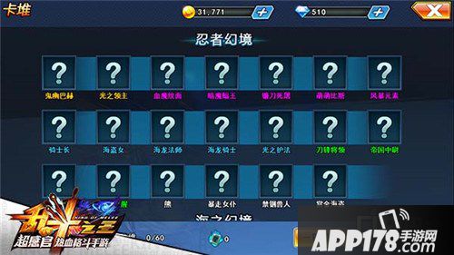 目前幻景挑战一共分为忍者幻境、海之幻境、死神幻境共三章幻境挑战,随着玩家们逐渐闯关深入,难度越来越大的同时能够获得的卡牌也越来越多,每个幻境玩家可以激活60个卡牌组合,让玩家自由挑选最适合自己的属性。
