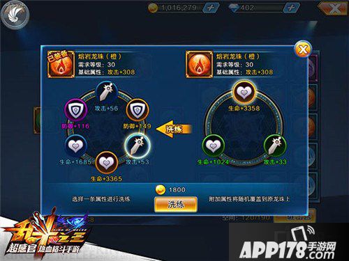 如果仅仅是六颗龙珠自然也不能提升太多的战力,但是每颗龙珠都有六个属性格,算上龙珠本身的基本属性,一共就有42条属性加成,增加的属性非常可观。而且玩家可以通过反复洗练来为其选择最佳属性。在龙珠背包中选择想要获取属性的龙珠,然后点击主龙珠选择要想洗练掉的属性,通过点击洗练,来进行属性随机抽取。