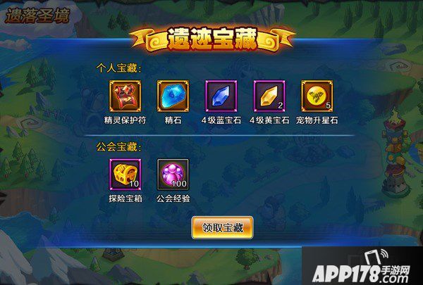 个人宝藏包括精灵保护符,精石,宠物升星石,以及与玩家等级相关的宝石。
