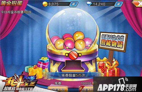 除了最新的精灵系统以外,新版本中还添加了金币扭蛋系统,玩家们可以通过扭蛋系统来进行抽奖。奖品将会根据玩家的等级,获取到相对应等级阶段的稀有游戏物品,扭蛋系统每天有数次免费的机会,而非免费状态下将通过消耗金币来进行抽奖,因此玩家切记要积攒好足量的金币。
