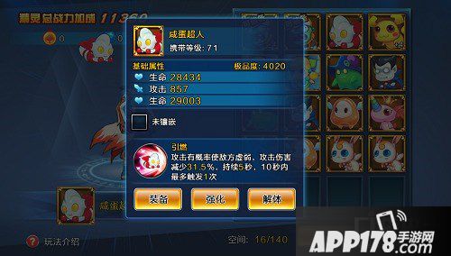 精灵技能引燃:攻击有概率使敌方虚弱,攻击伤害31.5%,持续5秒,10秒内最多触发1次(持续时间由强化等级决定,强化越高持续越久)
