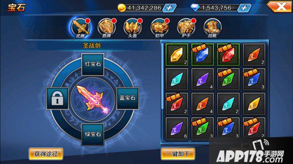 宝石可合成,3个同种类宝石可合成高等级宝石,属性大大提高。