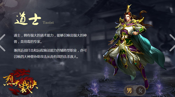 道士具备超群的道术能力,召唤强大的神兽和用毒是他们的强项。远程施法和近战打击兼具,使道士成为队友们进攻时的最佳助手。