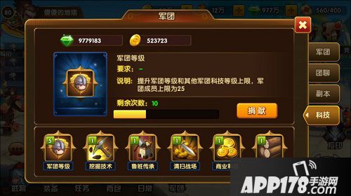 1.军团等级:提升军团等级,其他军团科技上限和军团成员上限。