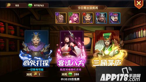 酒馆抽卡是玩家获得武将的主要来源,玩家可以通过做日常任务、攻打副本来获得酒令和水晶抽取武将,每天也有一次免费的机会哦!
