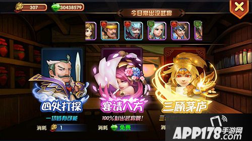 每天会随机一批“常出没武将”,代表今日有更大的机会获得相应武将。