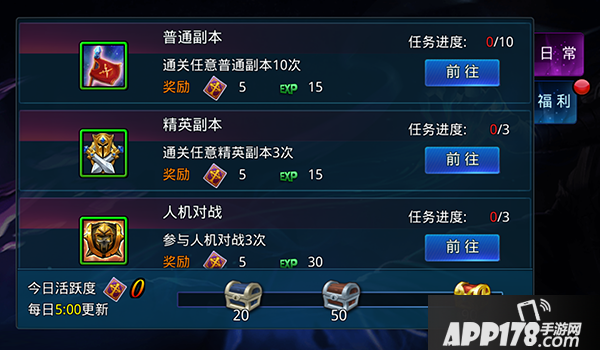 首先,英雄的最高等级不能超过你的人物等级,所以,完成日常来提升人物等级是必不可少的。快速升级的话,建议把每天的日常任务都做干净,这样的话不仅会有任务奖励的经验,也会得到不少道具奖励和金币方便后续发展。同时,日常任务系统条理列的十分清晰,大家只需要根据表单指引逐条完成就行啦,完全不烧脑子。