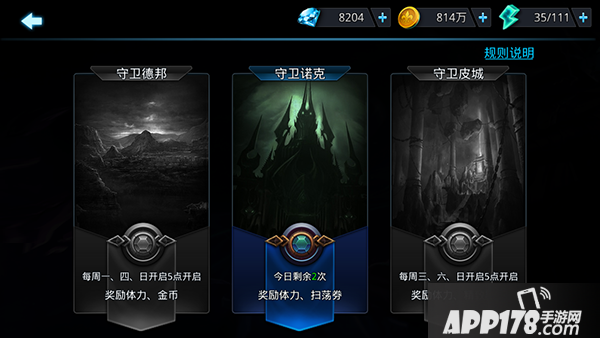 守卫诺克:每周2,5,7产出体力和扫荡券