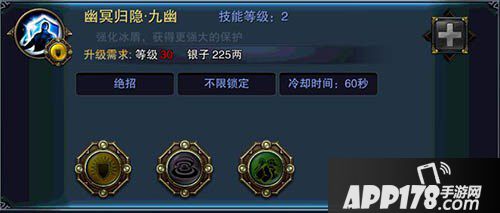 九幽能够为诸位玩家们带来在擂台当中极大的帮助,普通护盾转瞬变成强力护盾。大隐则适合玩家们在PVE攻略副本时使用,毕竟持续时间变长玩家们便可以更加放心的输出了。而冰封则摆明了属于团队作战技能,在打国战的小伙伴们可千万不要忘记切换哦。