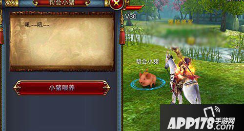 小猪主要存活于帮会领地之中,玩家们可以选择打开游戏下方的帮会面板进入帮会庄园,进入帮会庄园之后点击右上角的小猪便可以自动寻路至小猪身边进行喂养。
