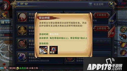 活动奖励:完成帮会押镖任务,可获得大量经验和帮会贡献。