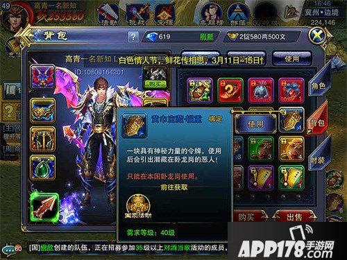 这是去卧龙岗收集钻石,皮料和原石的道具,是升级装备的必须的。一定要利用好。