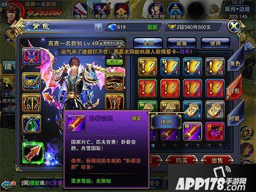 每一个小的细节,都能够提升战力、提高效率。随着等级的提升,各种玩法的开启,背包内会有越来越多的装备、道具和材料,随时查看,及时整理,才能井井有条。