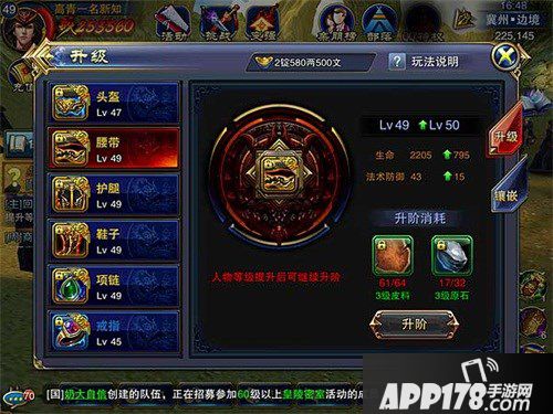 除了这些道具类的合成,是按照品质由低到高的顺序外,一些材料的合成,则要遵循用量的计划来进行。随时关注当前进阶还缺少的原石和皮料数量和等级,按照需要数量合成。不要一下全部合成最高等级的,目前用不上,战力还无法持续提升。