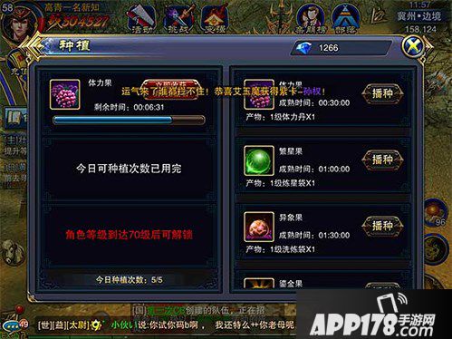 体力的获得有每天的三次自动回复,分别为0点、12点和18点回复60、30、30点体力。就是每个玩家每天自动回复的体力一共有120点。每天根据VIP等级不同,有不同的购买次数,平民玩家每天可以购买2次体力,贵族2以上玩家可以额外购买体力。另外的体力获得途径就是依靠每天五次的种植,可以全部选择体力果,每次产生1级体力丹1个。