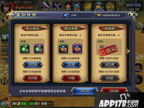 每天计算好自己的体力情况,当到了傍晚,觉得体力不够用的时候,可以选择部分玩法先不玩。这样等到第二天可以用银两或者钻石来找回,依然可以领取较多的奖励。
