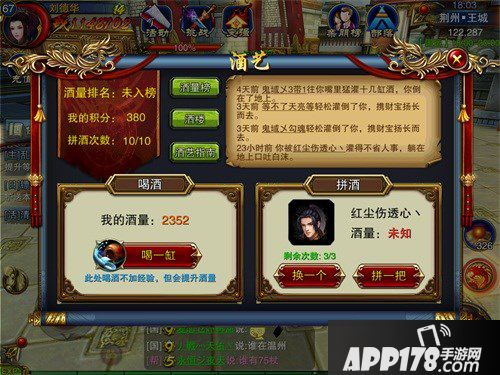 酒艺系统——这是个在最近两个更新才新加入的系统。玩家们可以和其他玩家拼酒,赢了可以获得很多道具。不过说拼酒,肯定不会是直接干杯了,也有很多小技巧。