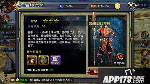 卡牌的来源主要途径之一是名将试练,个人建议大家每天都要花体力完成。当我们运气足够好,碰到张角、孟获、董卓、马超和吕布时,可以获得额外丰厚的虎符。