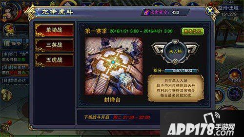 有别于现有的擂台战,龙争虎斗的单骑战并非随时随地开启,而是限定在赛季周期中的每周二21:30-22:00期间开启。与此同时,我们在战场中所遇到的敌人,也不再像擂台战般那么好对付。