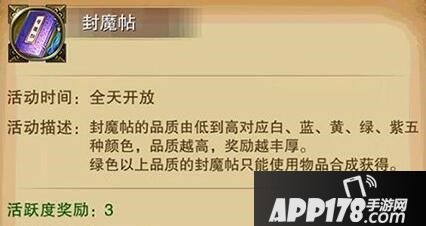 封魔贴这个道具也是有有好坏之分的,颜色不同代表着品质也不一样,白色品质最低,紫色最高。