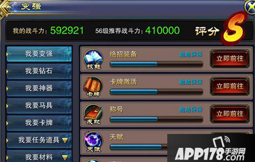 在变强界面当中玩家们可以直观的看到自身的战斗力以及当前等级推荐的战斗力,除此之外还可以查询到自身所最不足的地方,心怀天下的人可不能认为自己勉勉强强就可以达标呐!