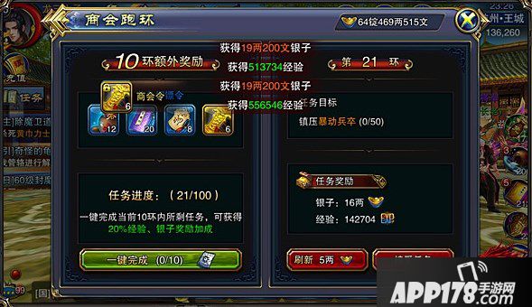 商会跑环任务为全天开放的活动,该任务不仅仅拥有独立的奖励,当我们跑环达到一定数量时还会有额外的环数奖励,包括封魔帖等实用道具。该活动为周常任务,每周每个人最多可完成200环。值得注意的是,贵族在完成任务后可以额外获得经验奖励。想要速刷该任务,技巧有三: