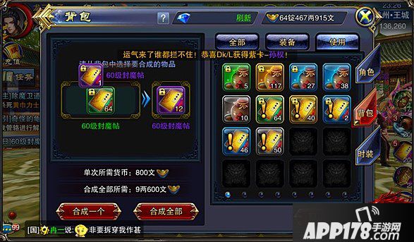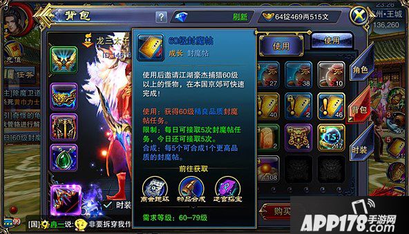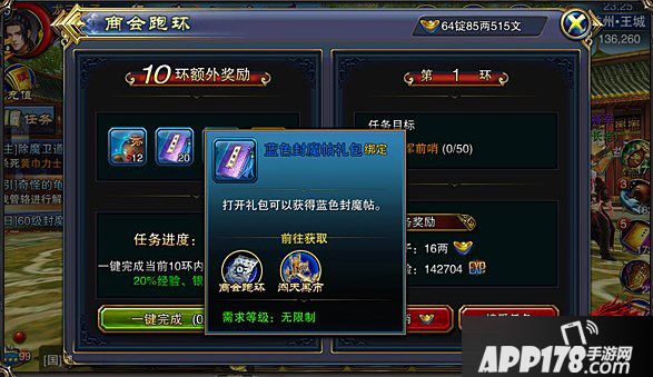 想要获取《六龙争霸3D》封魔帖,方式可谓多种多样。在众多的方式中,商会跑环、物品合成这两种模式无疑是比较冷门的。前者环数众多,任务完成耗时较长;后者不易察觉,很多新手往往会忽略这一方式。但是,个人认为这两种途径都是我们获取封魔帖这一高额经验道具的好方法,即便冷门我们也应该好好把握。