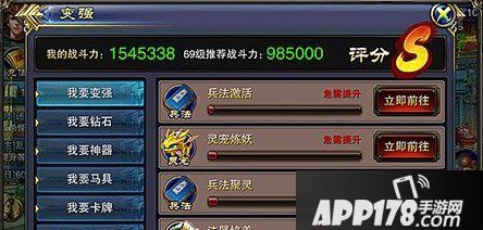 每种玩法,在前期增长战力是最多的。越到后面,获得材料越难,对战力的提升性价比也就越低了。所以,每种玩法前期先提升,收益是最大的。点开“变强”的界面,看下自己哪些玩法较弱,是急需提升的。