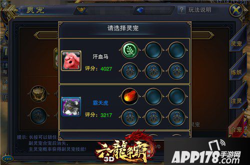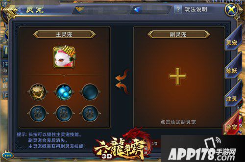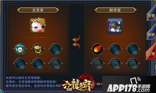宠物合成非常简单,只要在灵宠页面选择正义的“合宠”选项,就可以实现所要培养的主灵宠的技能合成。正所谓一“宠”功成万骨枯,要合成更强的灵宠,就要消耗掉其他灵宠,因此要有策略地选择,毕竟合成之后你将失去你的宝宝。