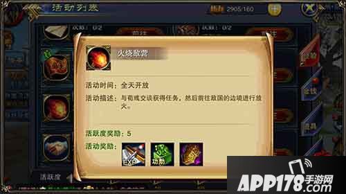 ——火烧敌营:该任务需要在敌国边境三处不同的位置进行放火,若是使用自动寻路完成的话,第三个点位将重新经过边境圆盘,大大增加被击杀的风险,因此不妨第二个点位完成后手动前往最后一处。当任务完成后,将可获取经验、功勋的奖励。