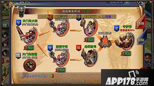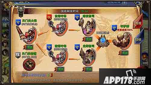 国战开始后,攻击方要先全力攻打天门关守将。攻下后可刷新复活点,复活点会刷新为天门关守将,以此类推(两个祭祀是不会成为复活点的,由两方不停抢夺)。这里要注意秘道的使用,因为秘道是直接可以到守护神附近的位置的,这样到了后期,可以利用秘道来进行突袭。复活点被攻击方拿下后,可以看到国战地图上防守方就不能再传送了。所以前期占领较多的复活点,对于获得胜利是有优势的。