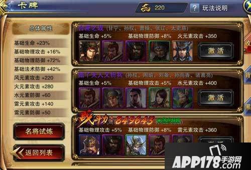 卡牌在游戏中对于角色的培养起到很重要的作用,卡牌是提升战斗力最多的玩法,卡牌可以通过卡牌钱庄或是参加名将试炼副本获得。获得后进入卡牌界面激活就可以获得永久属性的增加。不同的卡片可以组合激活属性。卡牌的组合非常的多,这里就需要玩家小伙伴们根据自己的角色职业来有选择的进行培养。在游戏中总共分成了四大职业破军、苍龙、天煌、九曜。