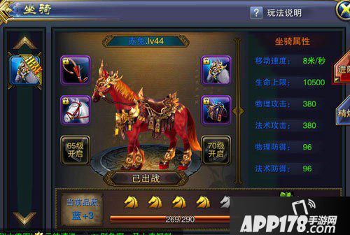 坐骑玩法是六龙争霸3D游戏中非常有特色的一个玩法。坐骑不但可以骑乘还可以为玩家小伙伴们带来大量的属性和战斗力的提高。坐骑可以通过进阶功能消耗道具马草来提升属性。马草的主要来源是参加活动除暴安良。使用道具黄巾迷信每日可以获得更多的马草,另外可以在神羽商店兑换。在八阵图活动中运气好也可以获得大量的马草哦。坐骑等级不可超过角色等级,升级到一定的级别可以改变坐骑的外形哦。坐骑还可以装备6件马具。马具最高可达到紫色品质。品筑越高马具的属性越高。马具的主要来源是参加活动除暴安良。