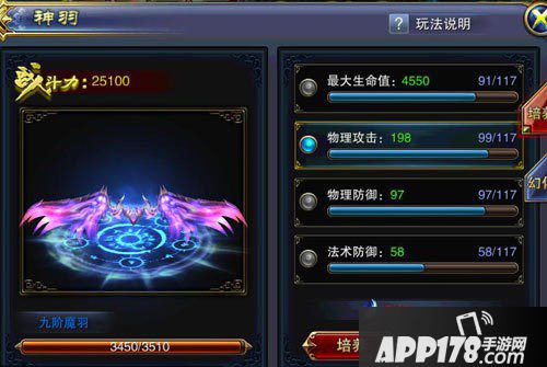 神羽就是角色佩戴的翅膀,拥有非常酷炫的外形。神羽可以通过培养来获得大量的属性和战斗力。每次培养的属性可以进行自由选择。每阶每种属性有培养上线,生阶可提升培养上限。神羽培养需要道具灵羽。灵羽可以从闯天关活动和八阵图中获得。神羽培养到制定解数可以提升品质,同时获得幻化效果。就是全新的外观。幻化激活可以获得幻化属性,幻化可以切换翅膀的外观。不影响神羽的属性,等级越高的神羽,幻化的外形越好看的说。